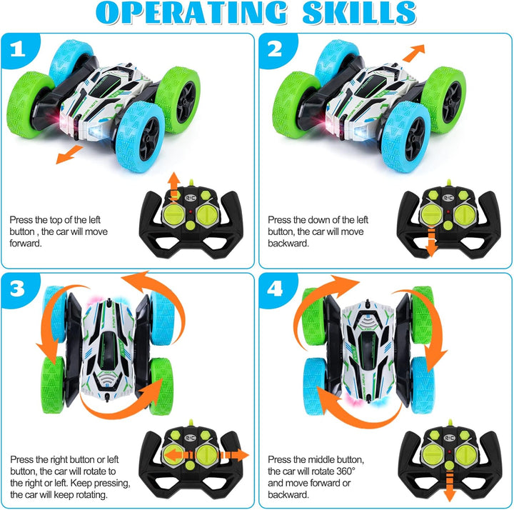 - 【360 GRAD SPIN, FLIP & DANCE】Ausser vorwärts, rückwärts, links abbiegen, rechts abbiegen und driften, dieses ferngesteuertes auto kann sich horizontal um 360 Grad drehen und wie beim Tanzen vertikal drehen. Bewältigen Sie alle Arten von
