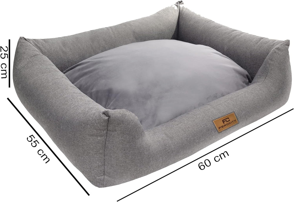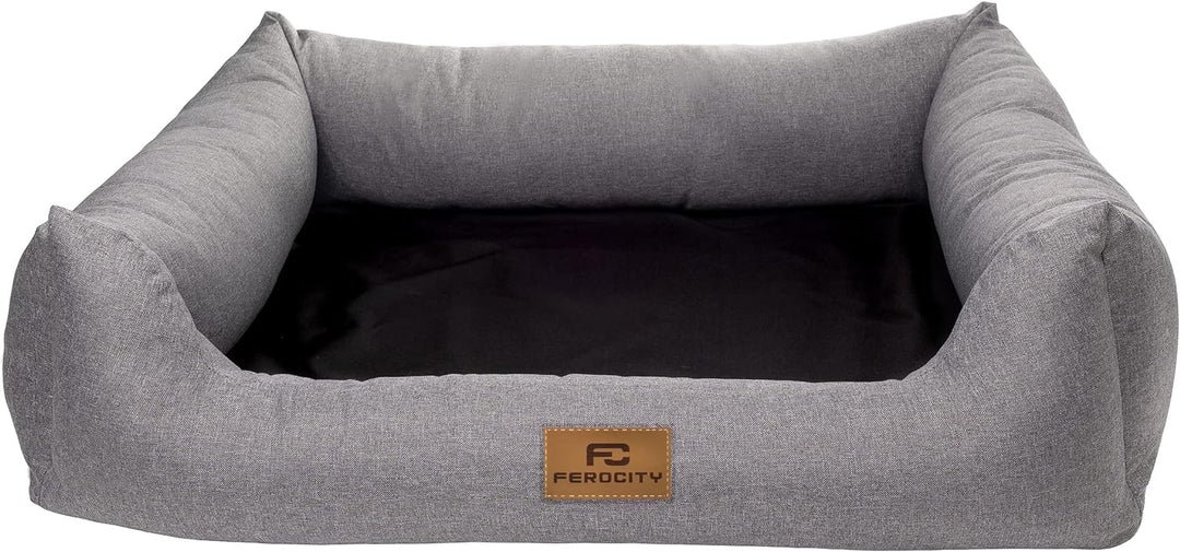 Ferocity Hundebett waschbares Hundesofa mit Rand und Wendekissen, Hundekissen aus Cordura und Samt,