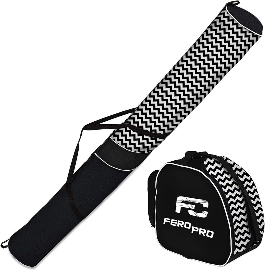 Ferocity Premium Set Skitasche und Skischuhtasche für 1 Paar Ski-Stöcke-Schuhe-Helm [053] Zickzack,