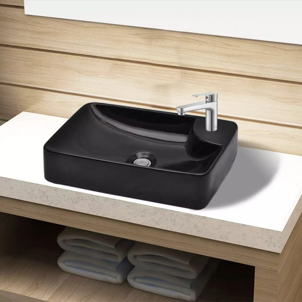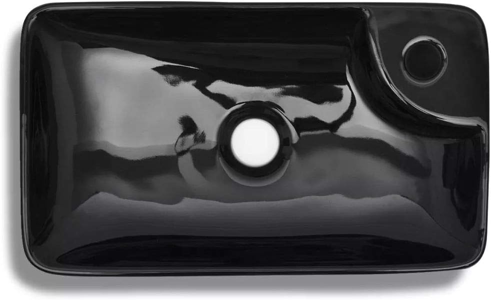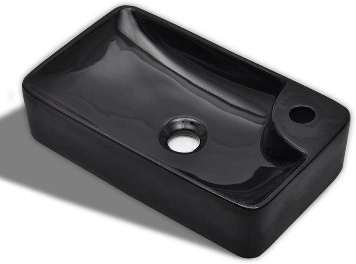 Festnight Keramik Waschbecken Handwaschbecken Waschschale mit Hahnloch 440 x 250 x 100 mm Schwarz