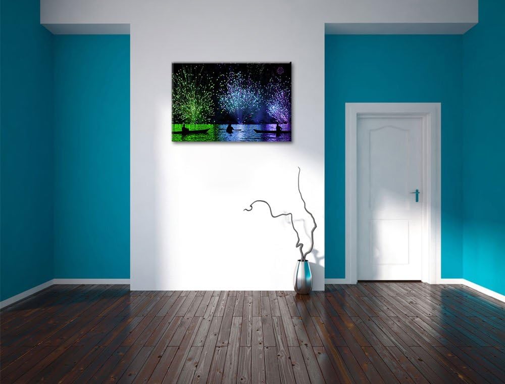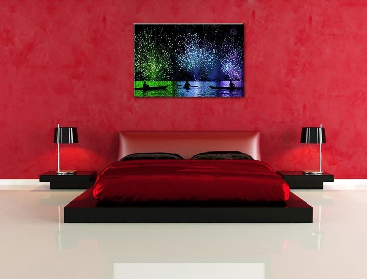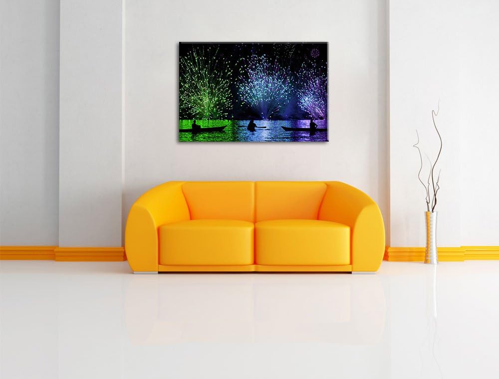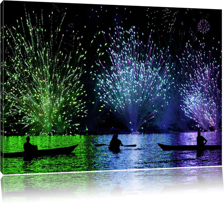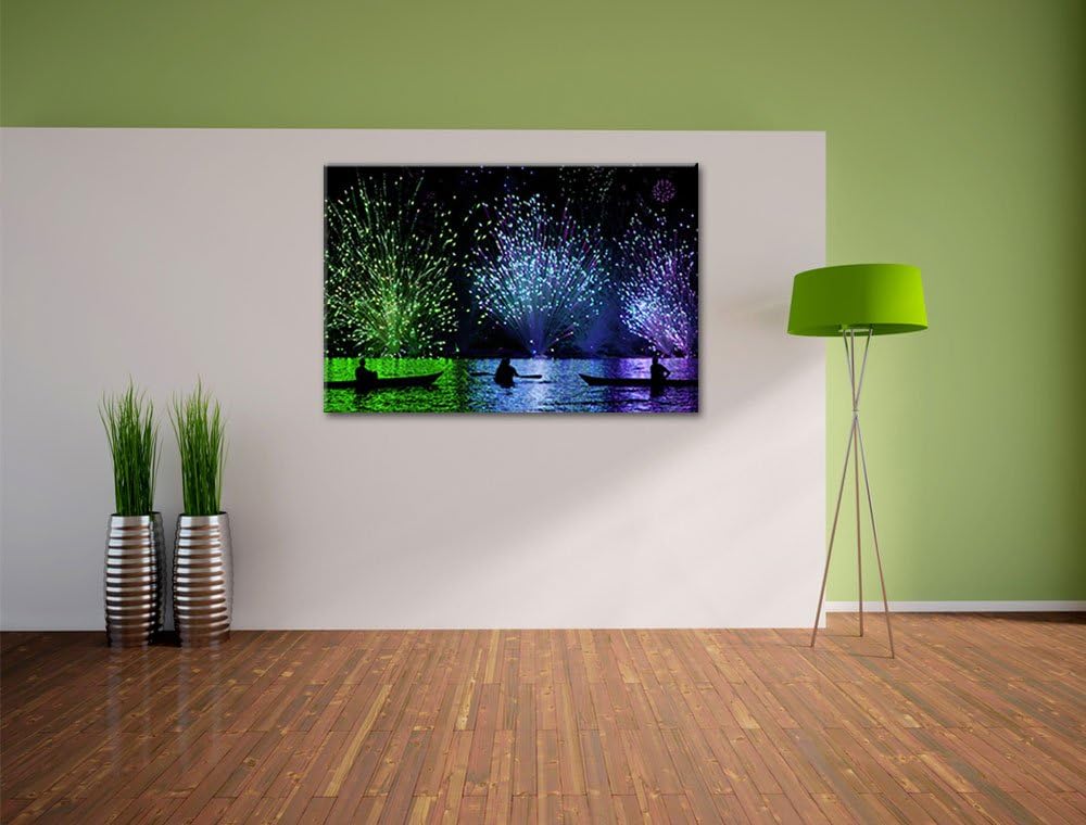 Feuerwerk auf dem Wasser, Format: 100x70 auf Leinwand, XXL riesige Bilder fertig gerahmt mit Keilrah