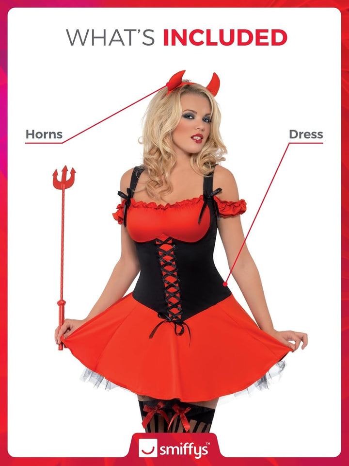 - Sündhafter Teufel Kostüm für Damen, Inklusive: Kleid mit Unterrock und Hörnern, Ideal für Innenveranstaltungen, Perfekt für Karneval, Halloween oder Themenpartys