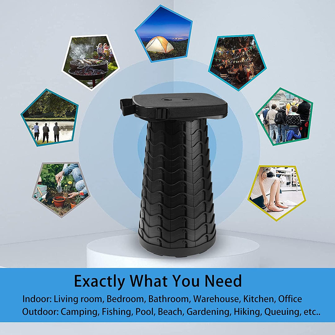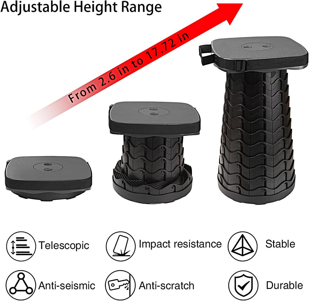 - 【12 Höhen verstellbar】Dank der patentierten Fischschuppen-Struktur kann dieser tragbare, einziehbare, zusammenklappbare Hocker leicht geöffnet und in einer gewünschten Höhe verriegelt werden, um innerhalb von 2 Sekunden zu verwenden, indem er ein
