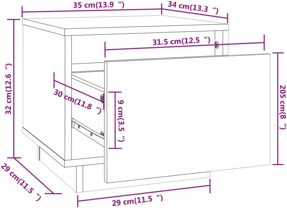 FIRBNUS Bedside Table Nachtkonsole Beistelltisch mit Stauraum Night Stand Nachttisch 35x34x32 cm Mas