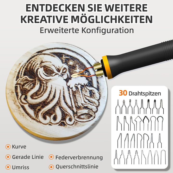 - Spitzen mit hoher Impedanz - Das Brandmalgeräte wird mit 30 verschiedenen Drahtspitzen geliefert, es kann präzise Linien, Formen und Schattierungseffekte auf einer Vielzahl von Materialien zeichnen, kein Biegen, keine Kohlenstoffablagerung bei hoher