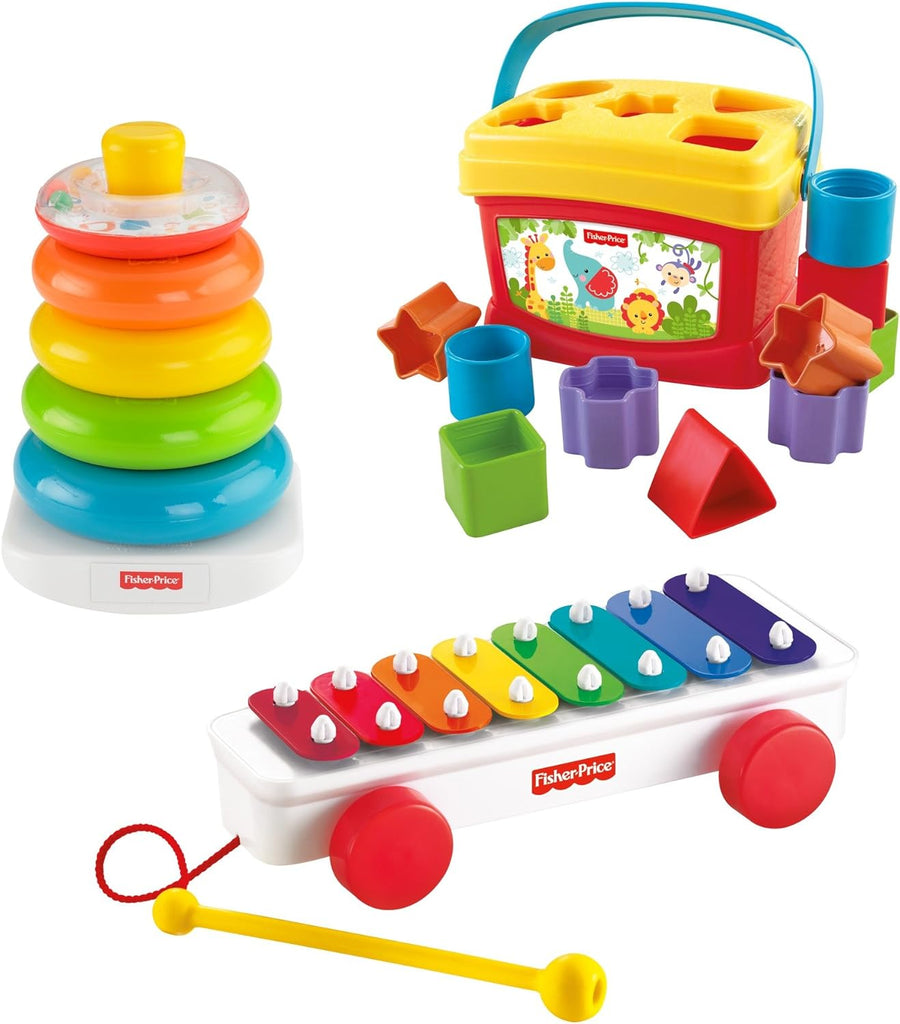 - Inkl. Farbringpyramide, Babys erste Bausteine und dem Fisher-Price Xylophon.
