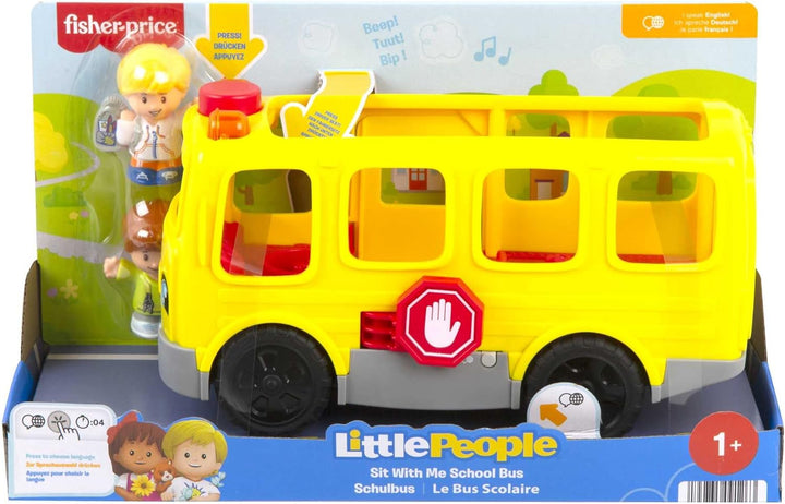 Fisher-Price HJN36 - Little People Schulbus – mehrsprachige Version, Spielzeug zum Anschieben mit Mu