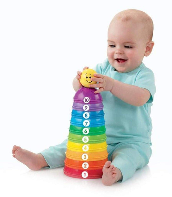 • Babys können die 10 Becher einfach übereinander stapeln, ineinander stecken oder etwa gleich grosse Becher zu einer Kugel zusammenstecken.