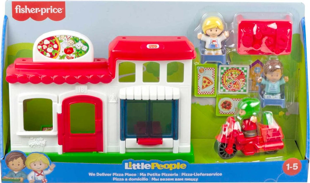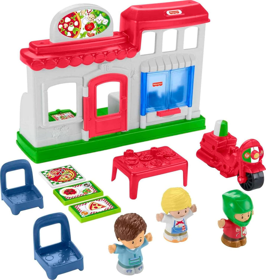 - Little People Pizzeria-Spielset mit Spielzeugroller zum Schieben und Zubehörteilen, der perfekte Spielspass