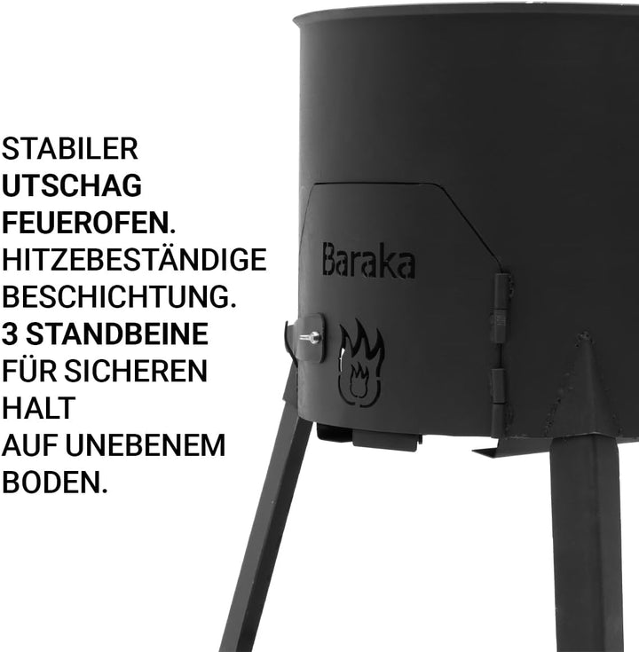 - Das Feuer im Inneren des Ofens erzeugt nicht nur wohlige Wärme, sondern verleiht Ihren Gerichten auch einen unvergleichlichen, rauchigen Geschmack. Von saftigen Fleisch, Gemüse, Pilaw oder Eintöpfe bis hin zu aromatischen Beilagen - mit dem Utschak