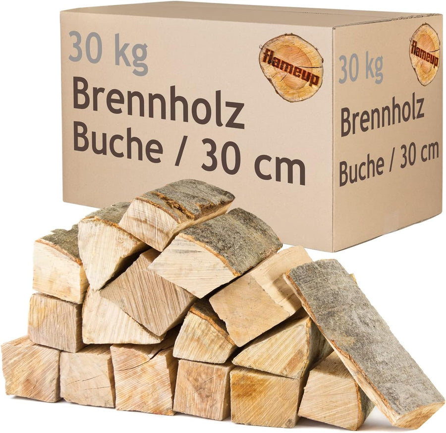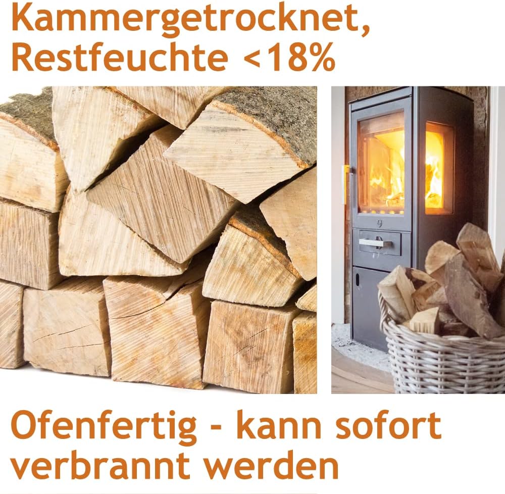 - 100% QUALITÄT: Dieses Kaminholz ist kammergetrocknet (ist also trocken), somit ofenfertig und hat eine Restfeuchte von weniger als 18%. Das Holz stammt aus regionalen, hessischen Wäldern. Beim Öffnen vom Karton werden Sie vom Duft des Holzes
