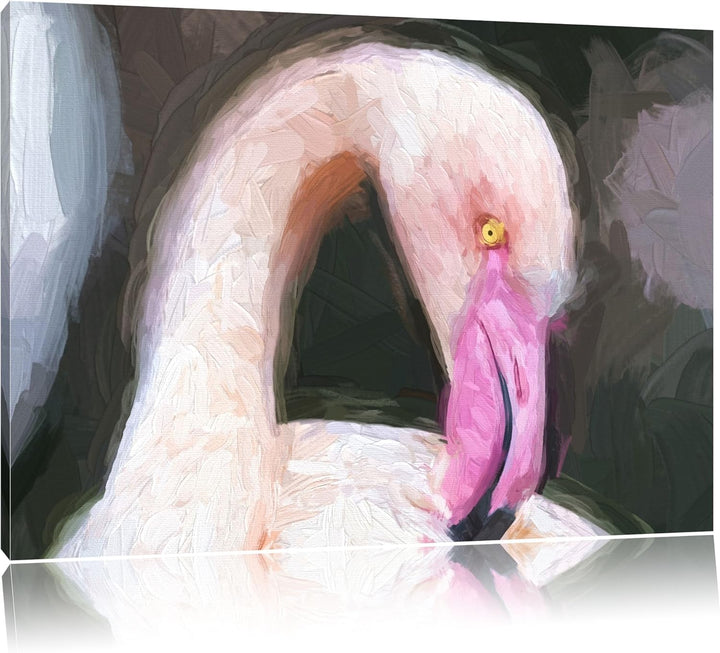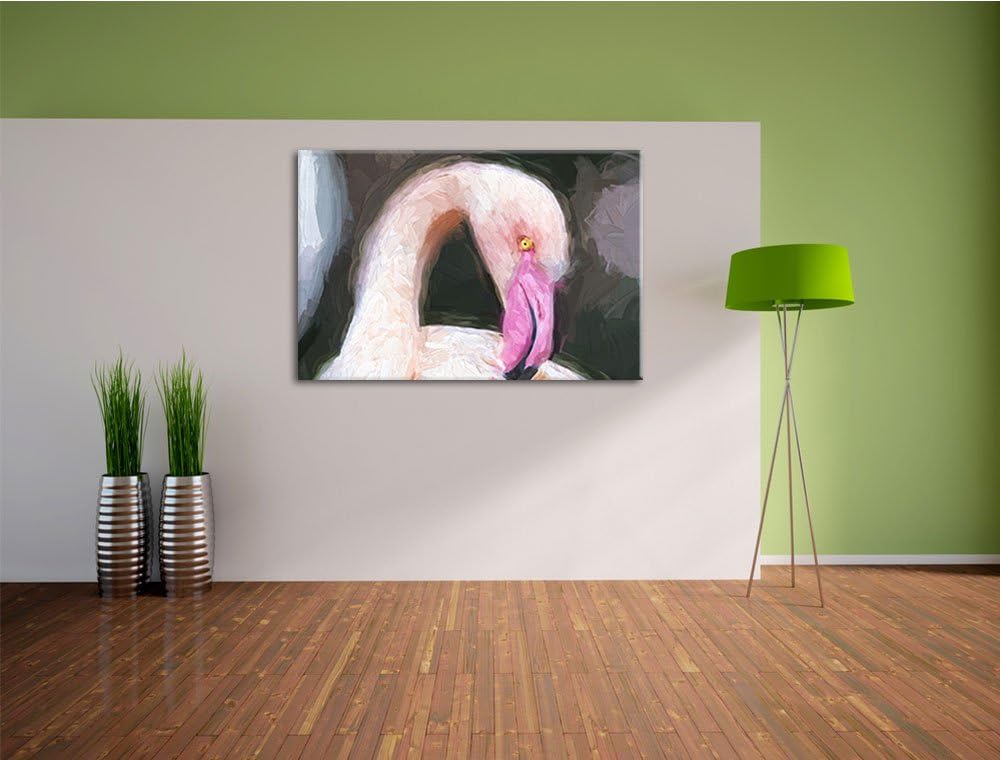 Flamingo beim Putzen Deluxe Format: 100x70 cm auf Leinwand, XXL riesige Bilder fertig gerahmt mit Ke