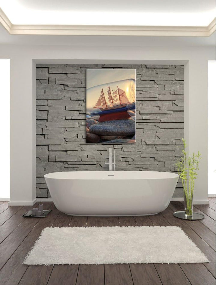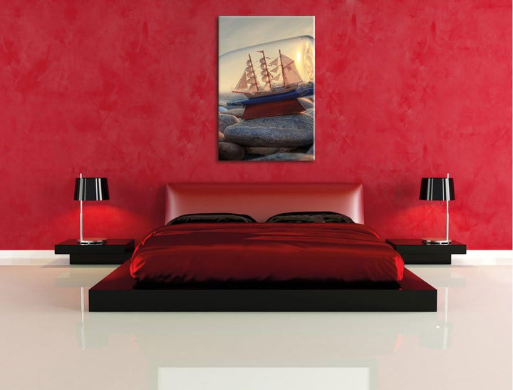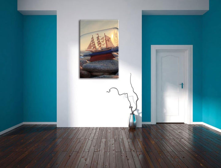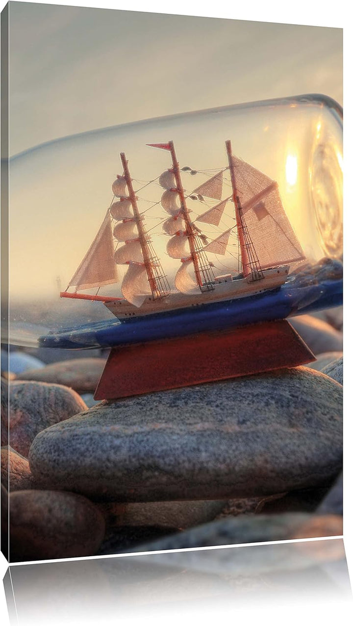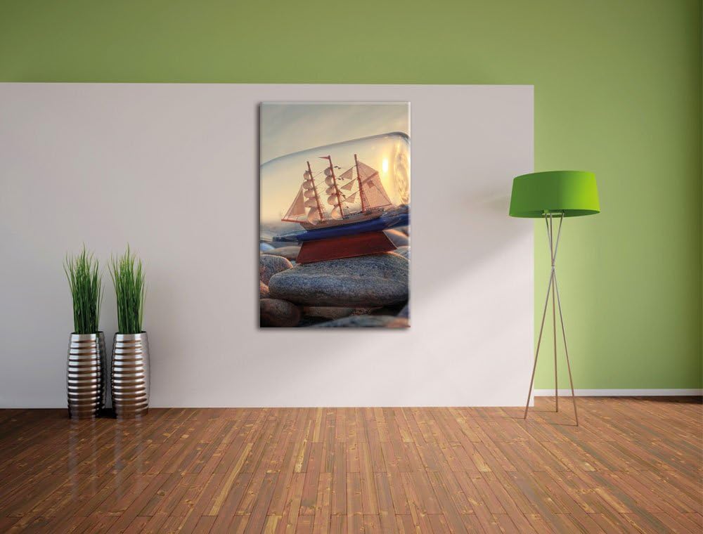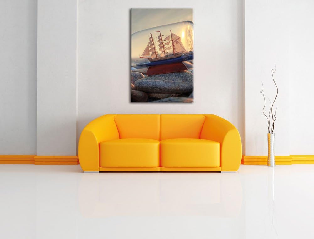Flasche mit Schiff, Format: 100x70 auf Leinwand, XXL riesige Bilder fertig gerahmt mit Keilrahmen, K