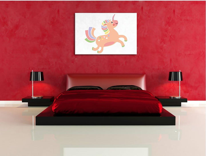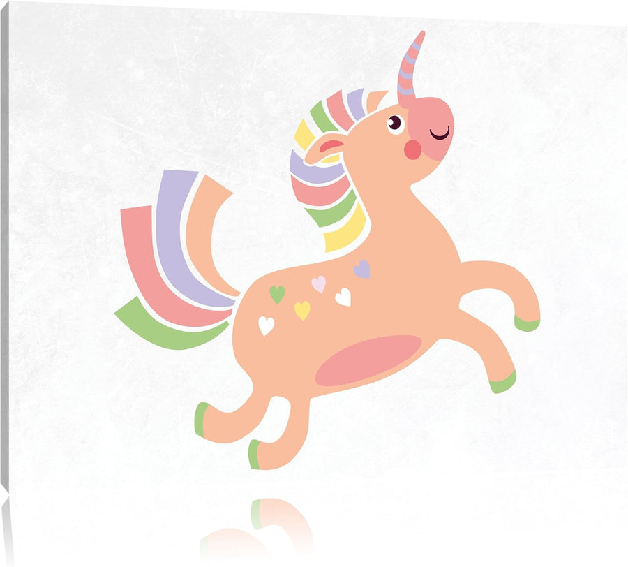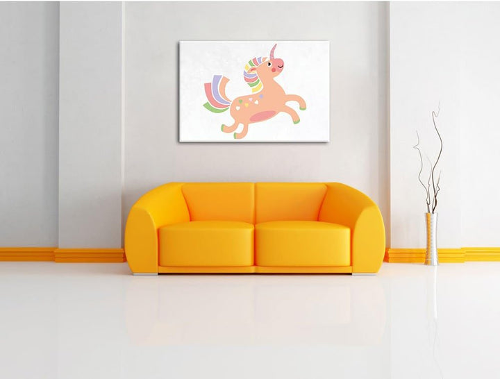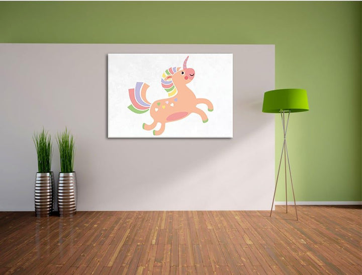 Flauschiges Einhorn weiss, Format: 100x70 auf Leinwand, XXL riesige Bilder fertig gerahmt mit Keilra