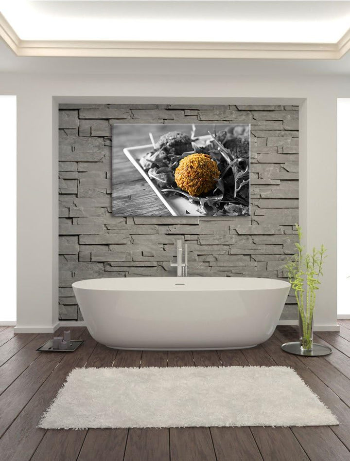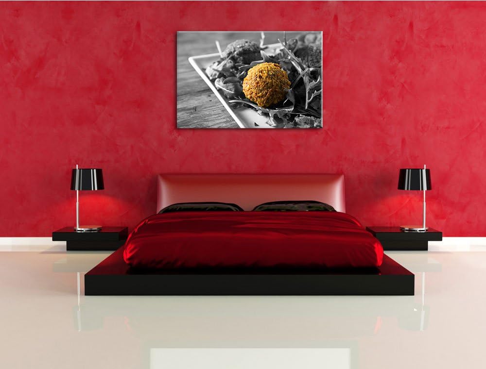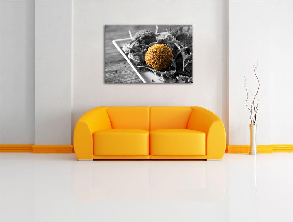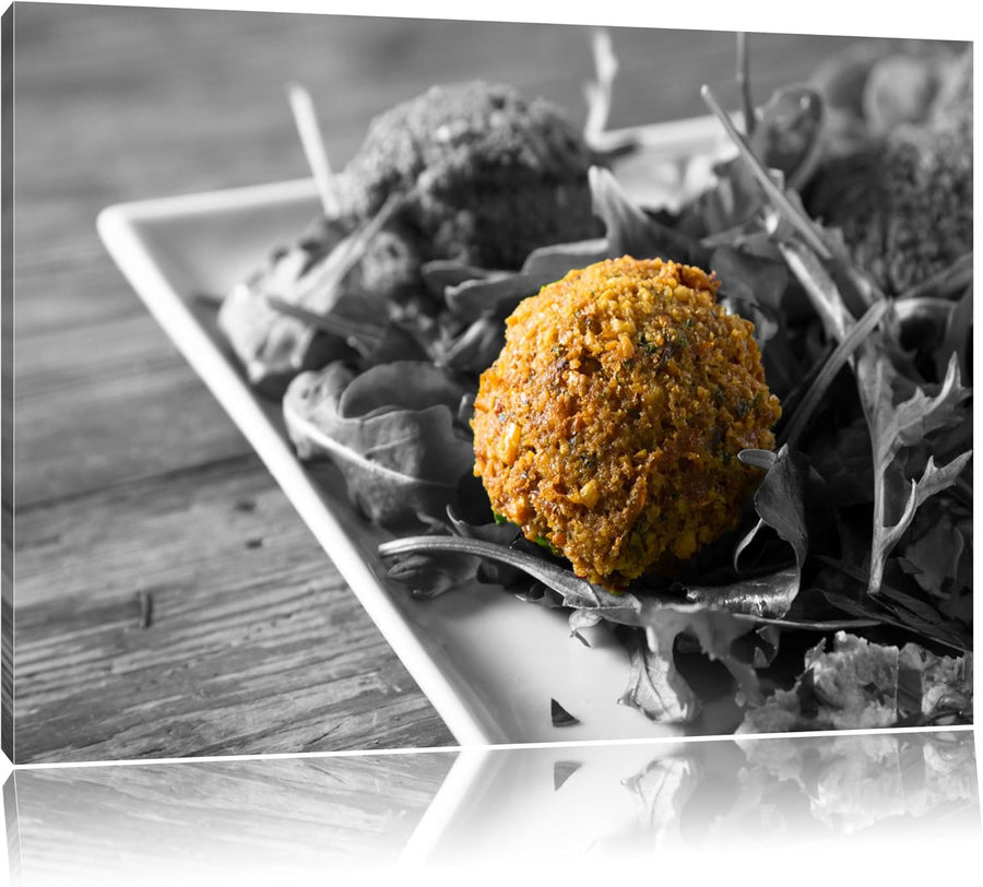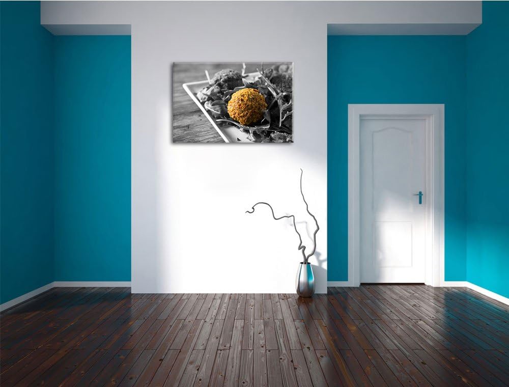 Fleischbällchen Salat schwarz/weiss Format: 100x70 cm auf Leinwand, XXL riesige Bilder fertig gerahm