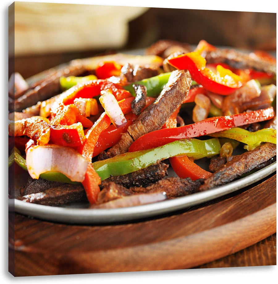 Fleischpfanne mit Paprika, Format: 70x70 auf Leinwand, XXL riesige Bilder fertig gerahmt mit Keilrah