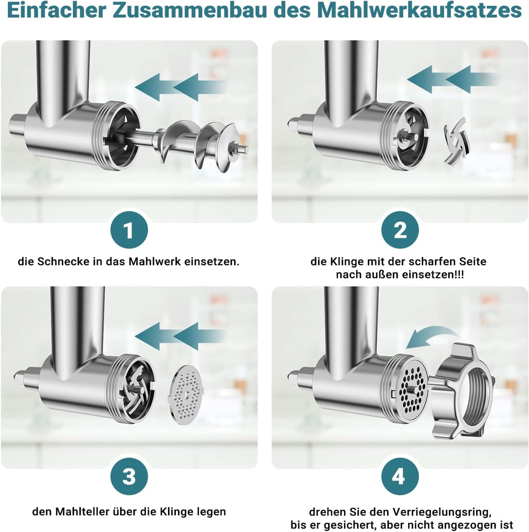 - 🍎【Nur Fleischwolf-Zubehör】 - Das Paket enthält das KitchenAid-fleischwolf-Zubehörset für alle kitchen aid küchenmaschinen, die Küchenmaschine ist nicht im Paket enthalten.