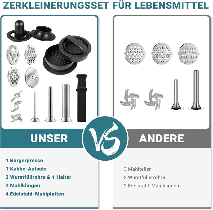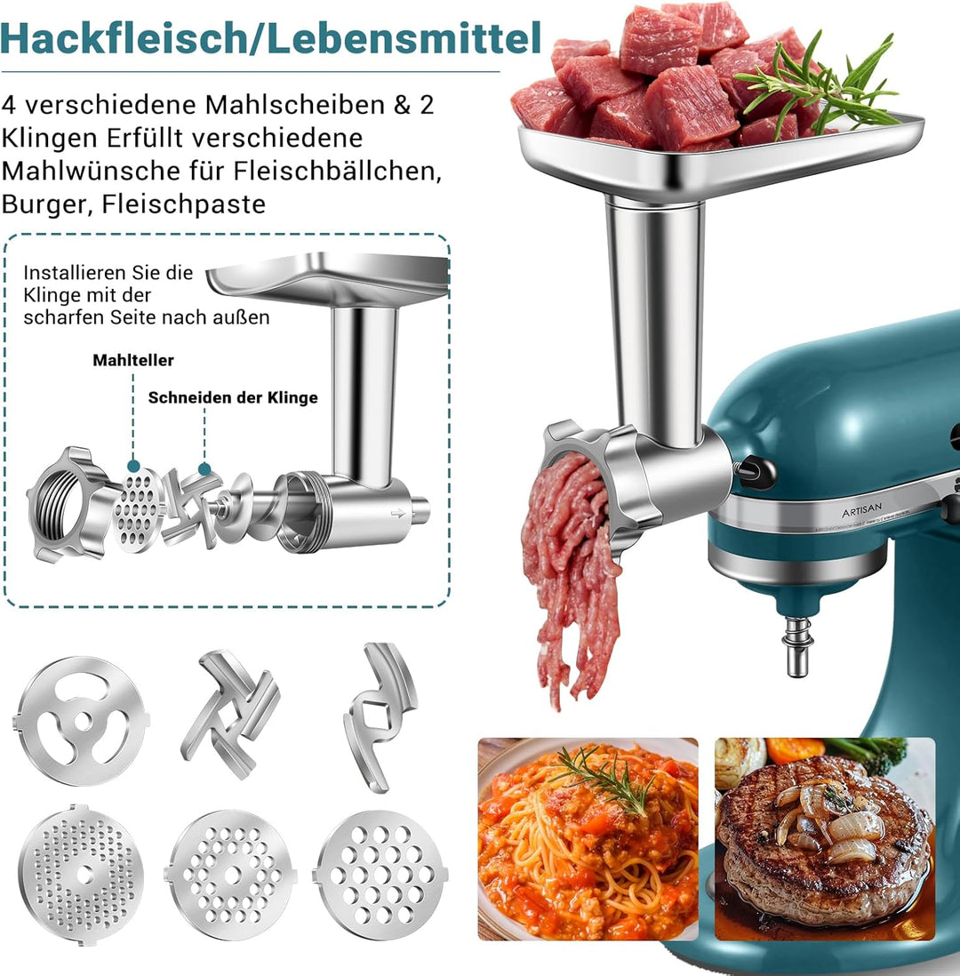- 🍎【Überlegene Qualität】 Wir sind bestrebt, qualitativ hochwertige Produkte für KitchenAid Standmixer zu liefern. Mit diesem Kitchen Aid Fleischwolf-Zubehör von uns können Sie Ihren Mixer zu einem Fleischwolf, Wurstmacher, Kubbe-Maker und