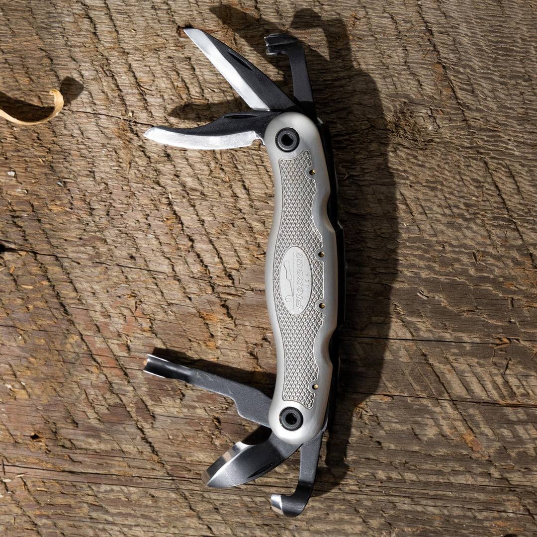 - Sechs Werkzeugklingen in einem praktischen Klappmesser: Detailmesser, gerader Hohlmeissel, Hakenmesser, V-Scorp, Hohlmeissel, Pelikanmesser