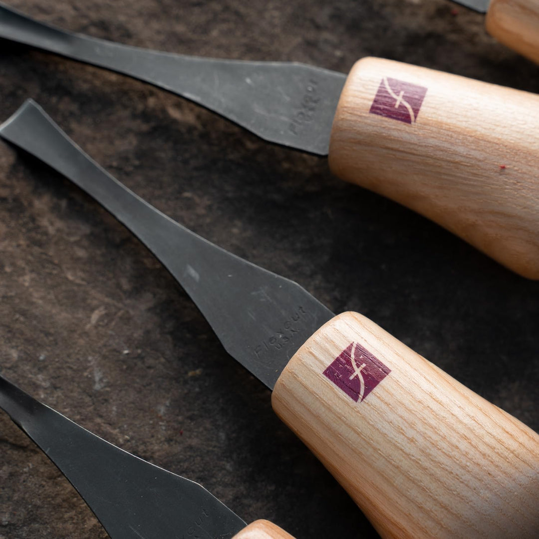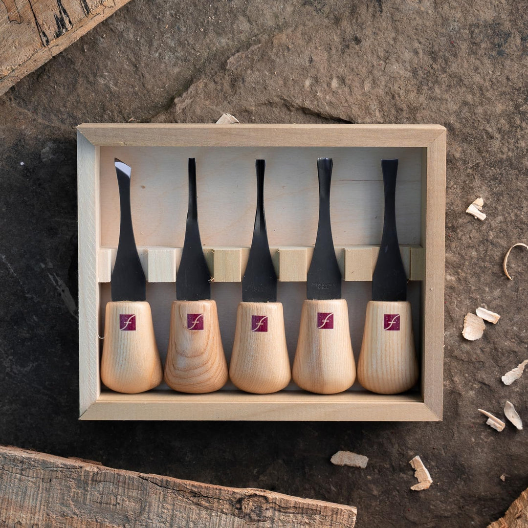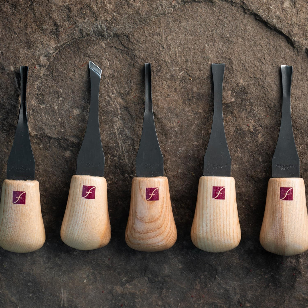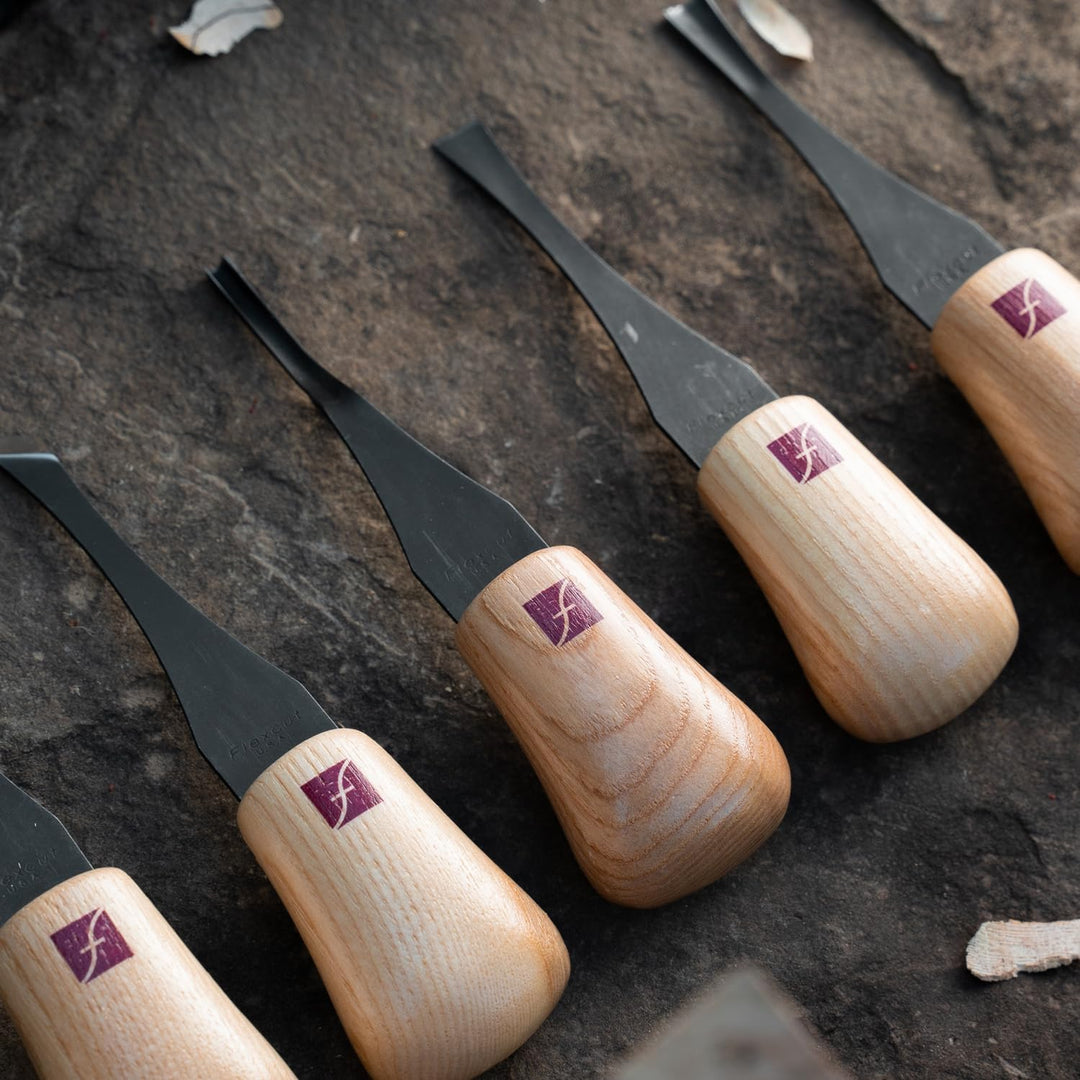 - Enthält (5) Schnitzklingen aus kohlenstoffreichem Stahl für Handflächenwerkzeuge - FR308 #20,8cm ; FR305 #3 x 1cm ; FR306 #6 x 0,8cm ; FR307 70 deg