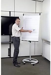 • Ein stabiler Fuss Ø 63 cm mit fünf feststellbaren Laufrollen, sorgt für eine hohe Mobilität des Flipchart Ständers