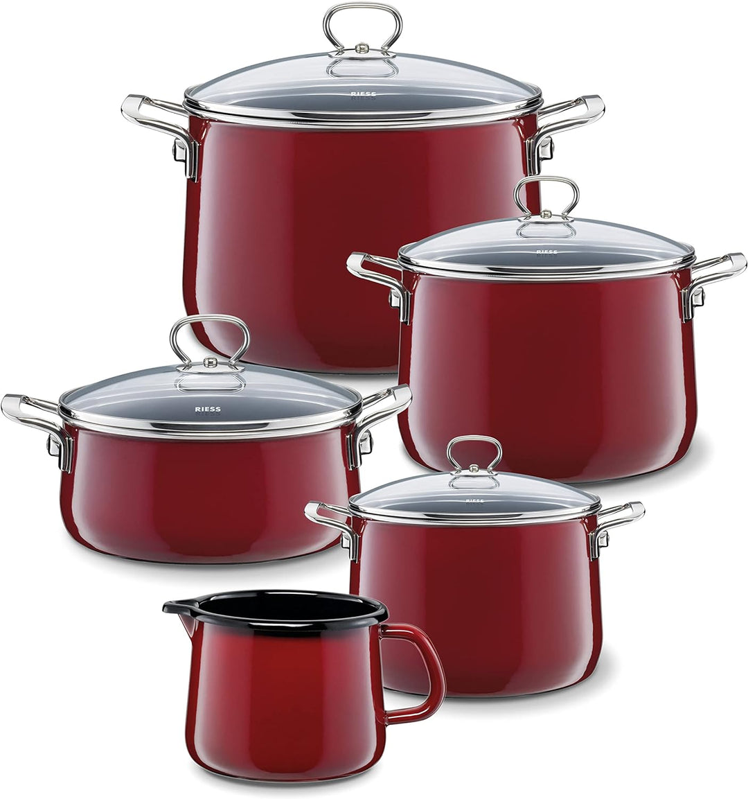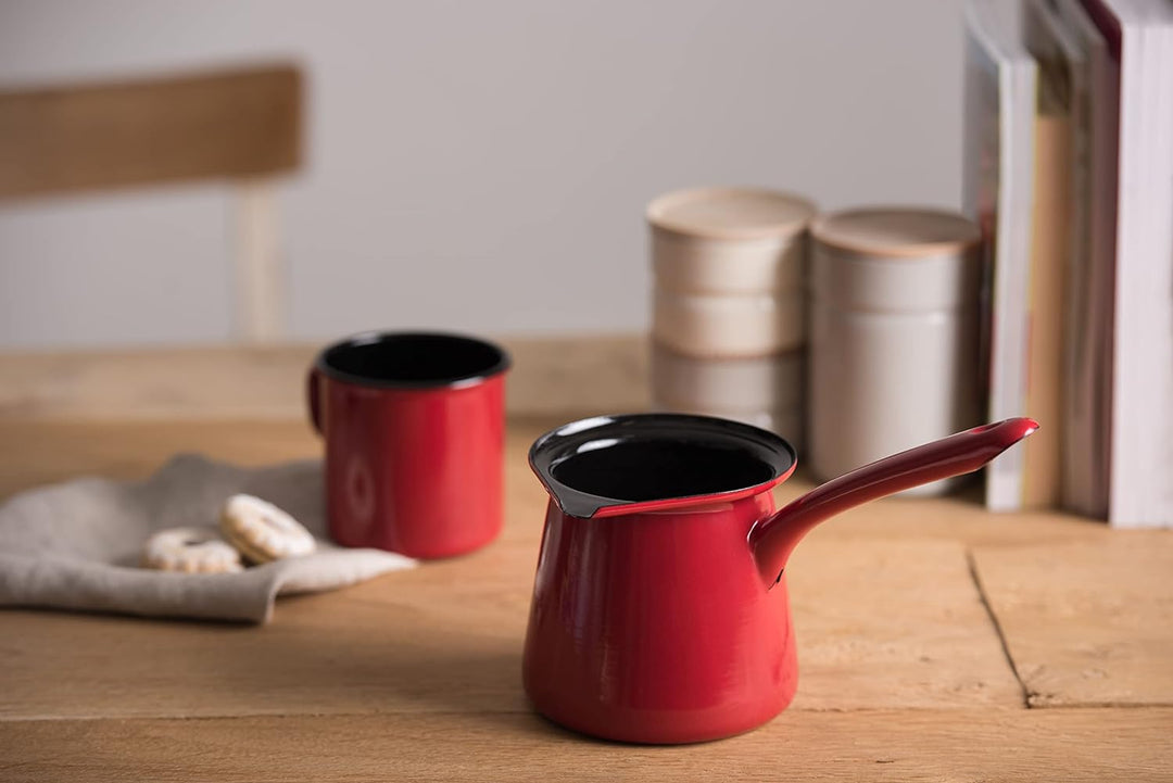 - Flötenaufsatz am Ausgiesser, mit zusätzlicher dunkelblauer Innenemaillierung für besondere Beständigkeit, Inhalt 2 Liter, Maximal Füllmenge 1,8 Liter, Dekor Color Rot