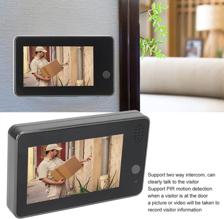 - 【UNTERSTÜTZT 2-WEGE-GESPRÄCH UND BEWEGUNGSERKENNUNG】 Der Video-Türspion unterstützt die PIR-Bewegungserkennung. Wenn ein Besucher an Ihre Tür kommt, werden Fotos oder Videos aufgenommen, um die Besucherinformationen aufzuzeichnen. Wenn Sie nicht