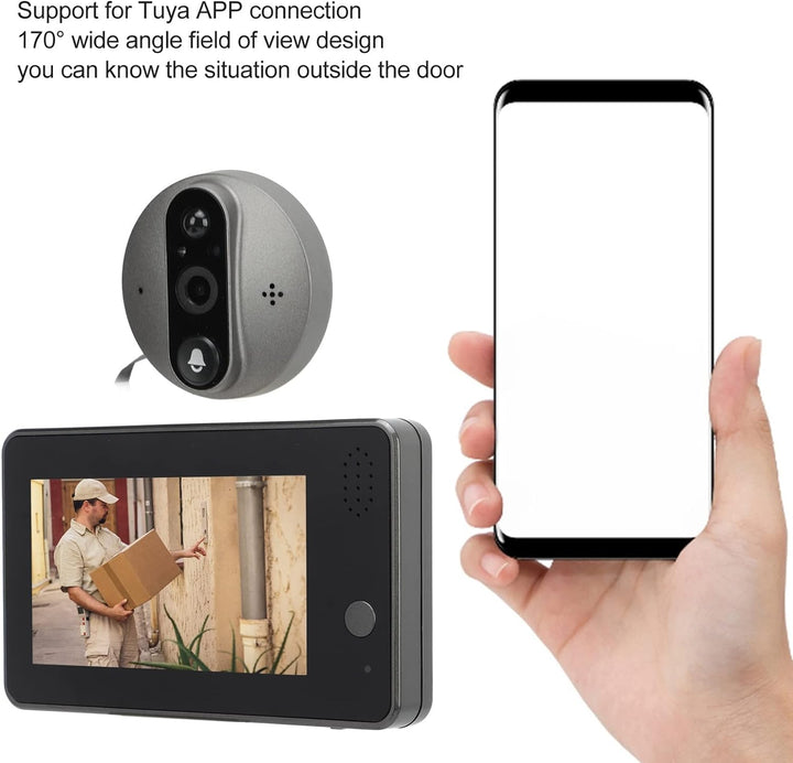 - 【120° WEITWINKEL-SICHT & INFRAROT-】 Die Guckloch-Türklingelkamera verfügt über eine 120°-weite Sichtabdeckung, um tote Winkel zu minimieren. Es unterstützt die TUYA APP-Konnektivität, sodass Sie jederzeit über Ihr Telefon wissen, was vor