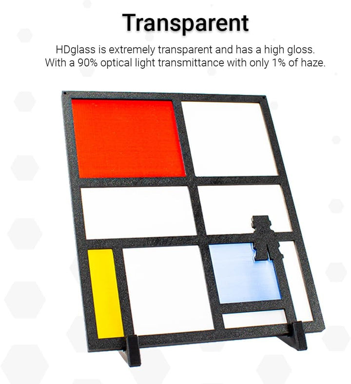 - Extremely transparent and high gloss; 90% optical light transmittance with only 1% of haze