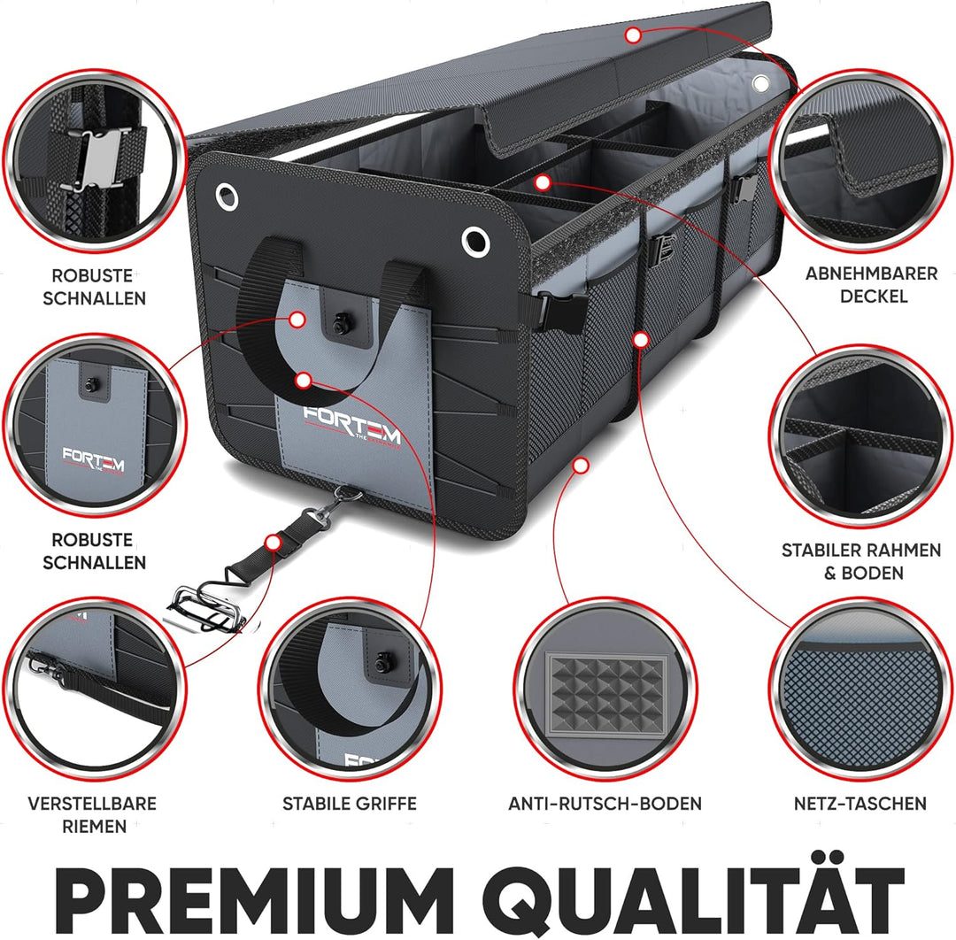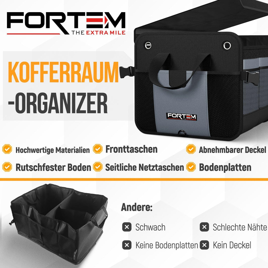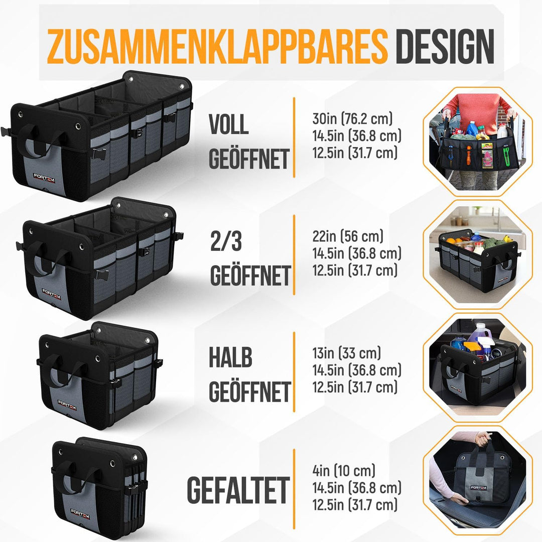 - Multifunktional - Fortem Kofferraum-Organizer und Aufbewahrung machen die Organisation des Autos einfach und einfach. Organisieren Sie eine Vielzahl von Produkten, von Lebensmitteln bis hin zu Bürobedarf, Accessoires (Handtaschen, Schuhe) oder Spielzeug