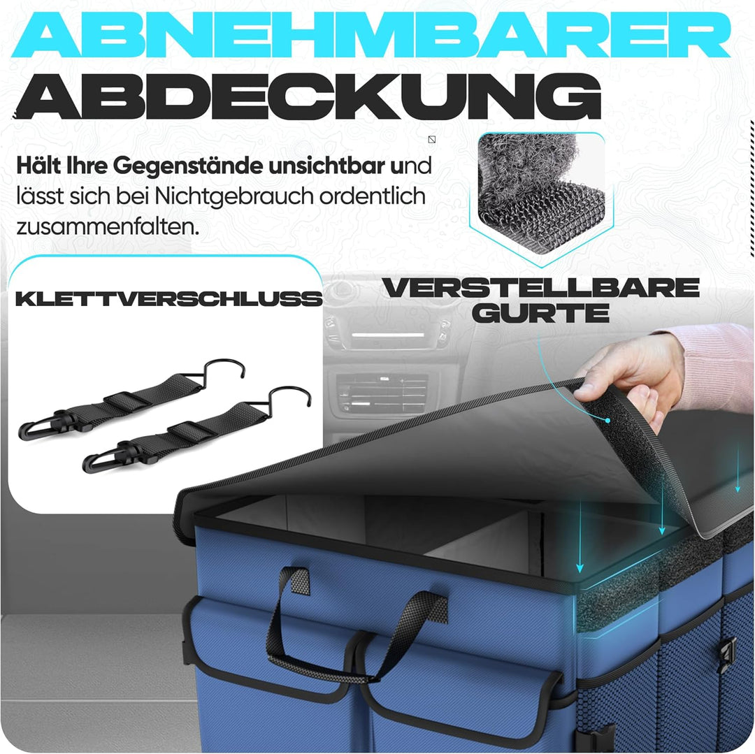 - Bleibt fest an Ort und Stelle - Unsere Organizer Kofferraum Box hat rutschfeste Streifen, um ein Verrutschen zu verhindern, sowie verstellbare Gurte mit Metallhaken zur Befestigung in Ihrem Kofferraum. Verstauen Sie kleine Gegenstände in den