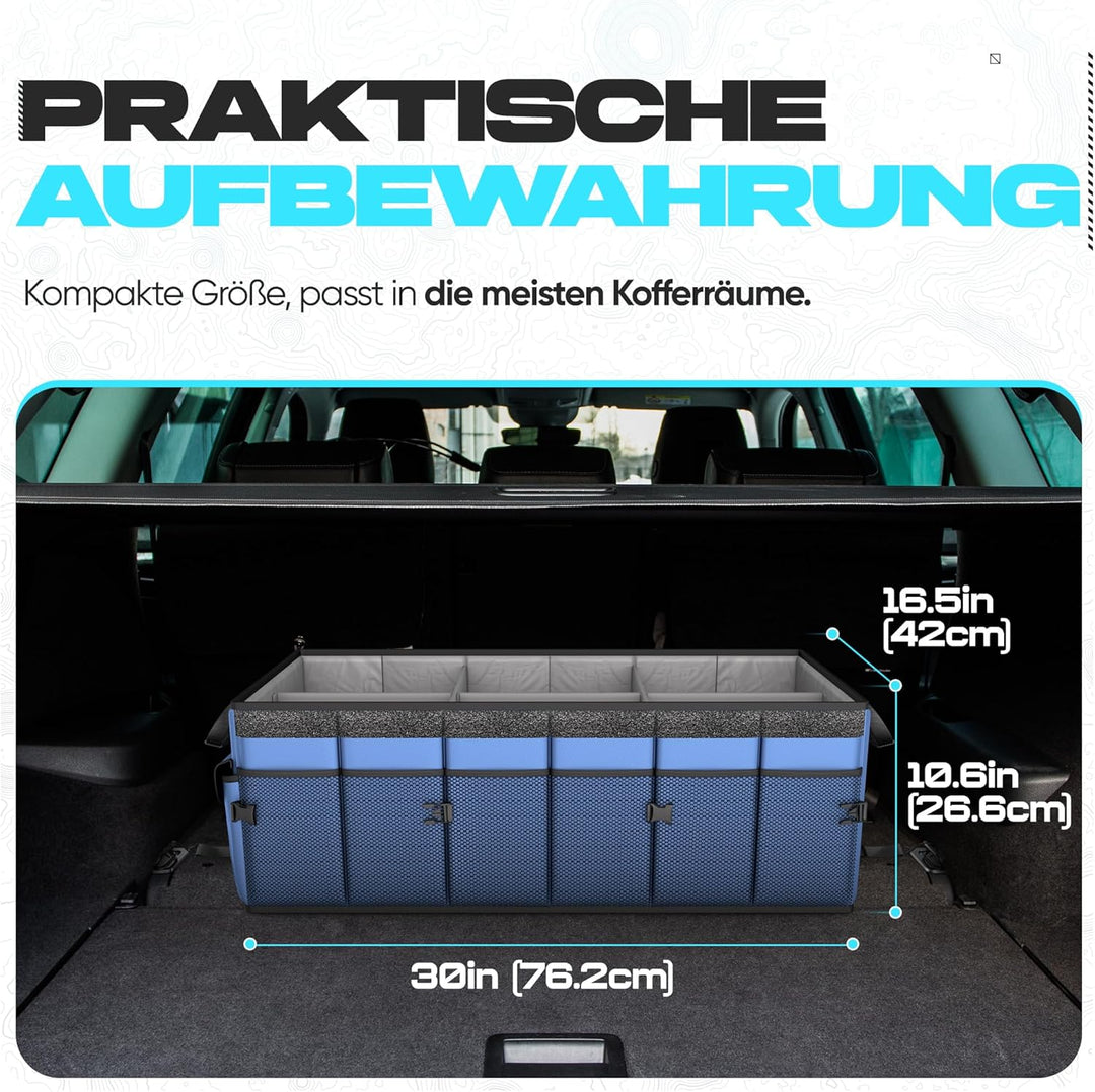 - Robustes Boxendesign - Der Premium Auto Kofferraum Organizer von Fortem ist mit stabilen Bodenplatten verstärkt, sodass jede Seitenwand gestützt wird. Unsere Kofferraum Tasche ist die beste unter den Auto Organizer Lösungen und Aufbewahrungsboxen mit