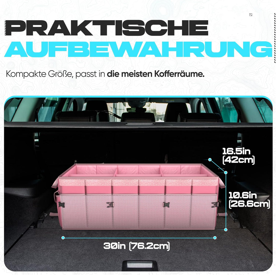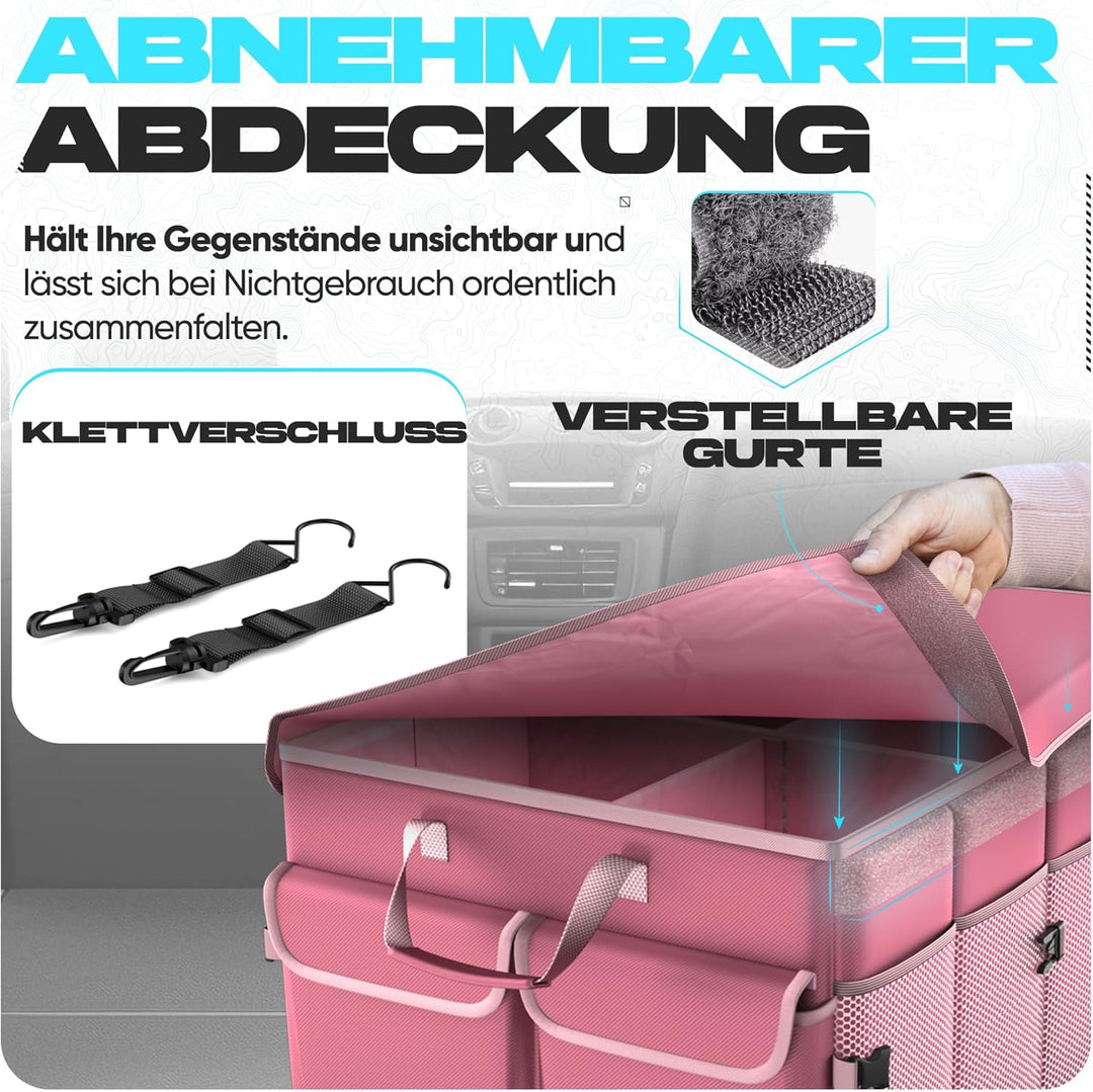 - Bleibt fest an Ort und Stelle - Unsere Organizer Kofferraum Box hat rutschfeste Streifen, um ein Verrutschen zu verhindern, sowie verstellbare Gurte mit Metallhaken zur Befestigung in Ihrem Kofferraum. Verstauen Sie kleine Gegenstände in den