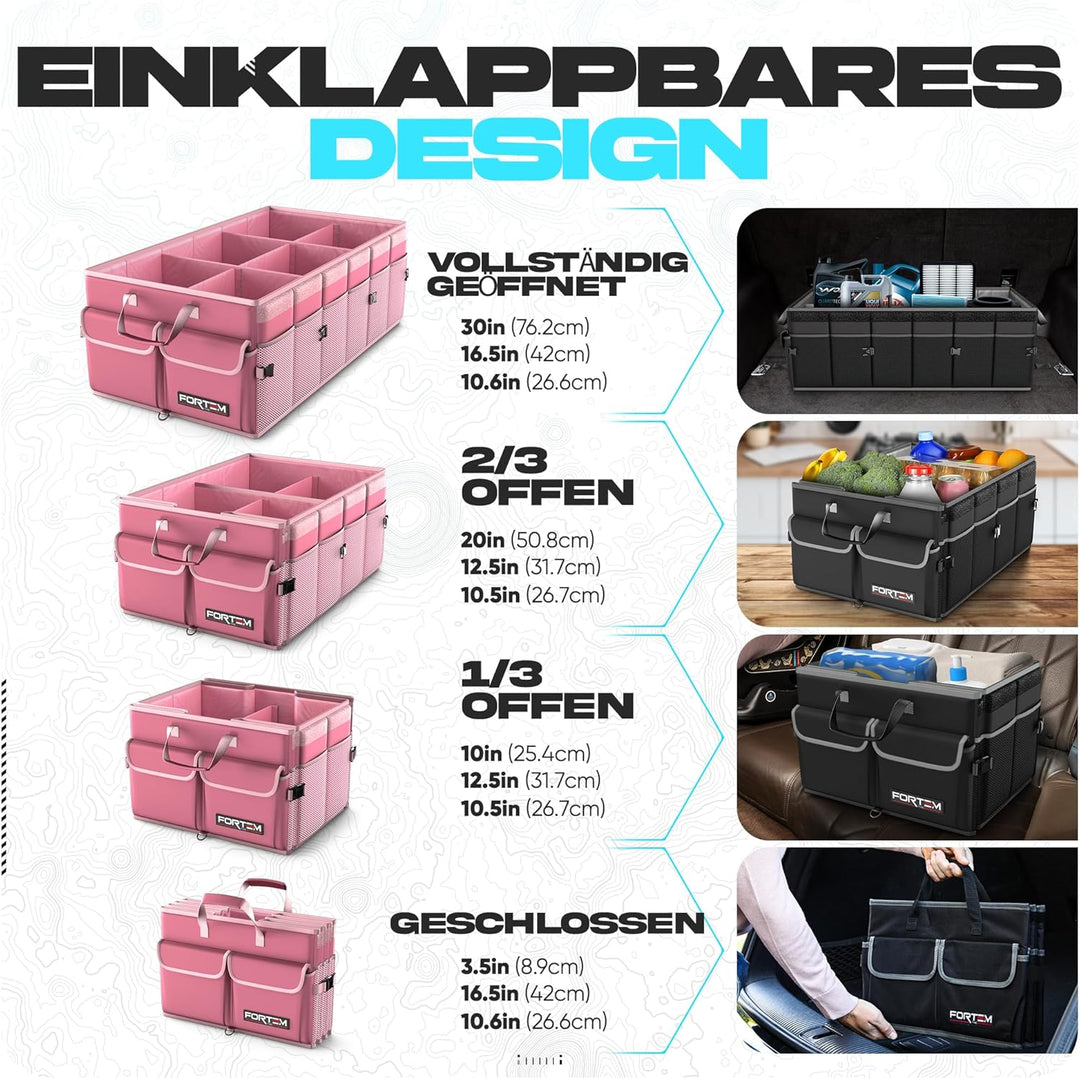 - Multifunktionale Auto Tasche Kofferraum - Die Fortem Kofferraumboxen machen die Organisation im Auto leicht und einfach. Organisieren Sie eine Vielzahl von Gegenständen, von Lebensmitteln bis zu Büroartikeln, Accessoires (Handtaschen, Schuhe) oder