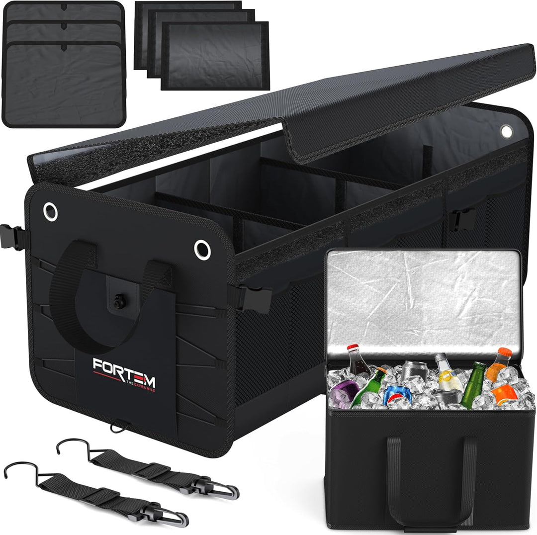 - Robustes Boxendesign - Der Premium Auto Kofferraum Organizer von Fortem ist mit stabilen Bodenplatten ver-stärkt, sodass jede Seitenwand gestützt wird. Unsere Kofferraum Tasche ist die beste unter den Auto Organizer Lösungen und Aufbewahrungsboxen mit