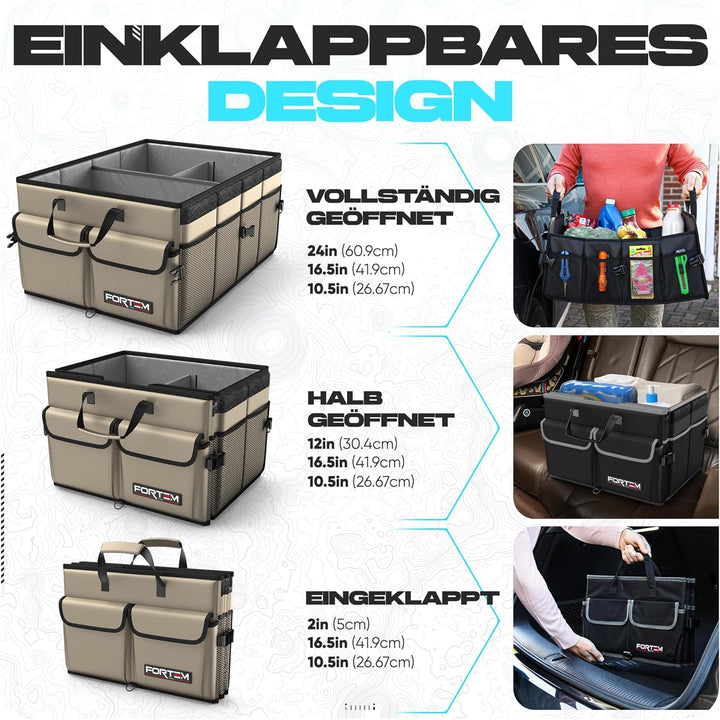 - · Multifunktionale Auto Tasche Kofferraum - Die Fortem Kofferraumboxen machen die Organisation im Auto leicht und einfach. Organisieren Sie eine Vielzahl von Gegenständen, von Lebensmitteln bis zu Büroartikeln, Accessoires (Handtaschen,