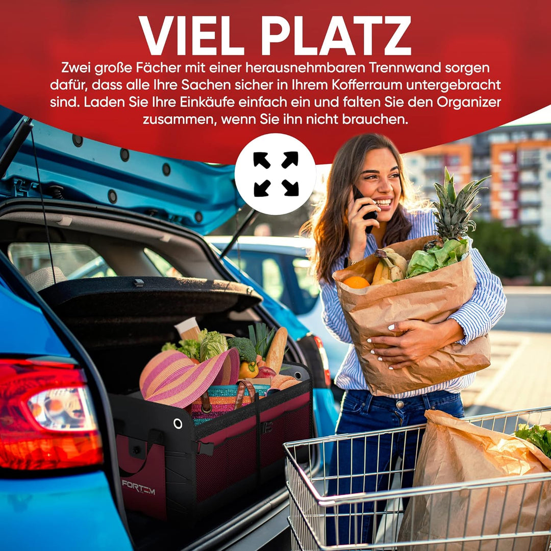 • Multifunktionale Auto Tasche Kofferraum - Die Fortem Kofferraumboxen machen die Organisation im Auto leicht und einfach. Organisieren Sie eine Vielzahl von Gegenständen, von Lebensmitteln bis zu Büroartikeln, Ac-cessoires (Handtaschen, Schuhe) oder