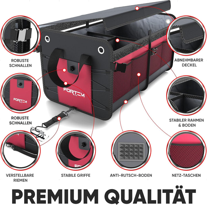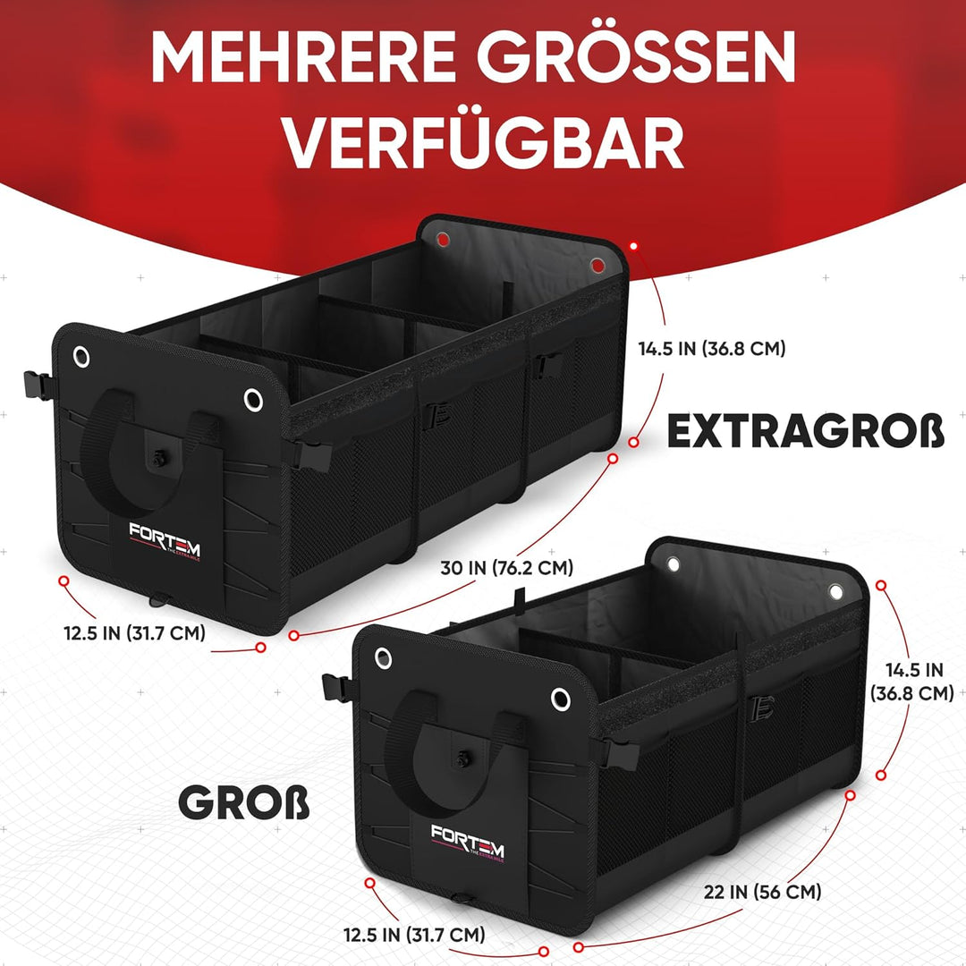 • Robustes Boxendesign - Der Premium Auto Kofferraum Organizer von Fortem ist mit stabilen Bodenplatten ver-stärkt, sodass jede Seitenwand gestützt wird. Unsere Kofferraum Tasche ist die beste unter den Auto Organizer Lösungen und Aufbewahrungsboxen mit