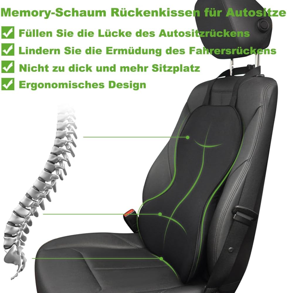 - Upgrade des Sitzgefühls Ihrer Autositze: Sie könnten Situationen erleben, in denen Ihr Autositz nicht genügend Unterstützung für Ihren Lendenwirbel- oder Rückenbereich bietet. Dieses Memory-Schaumstoff Lendenkissen (Rückenkissen) ist so