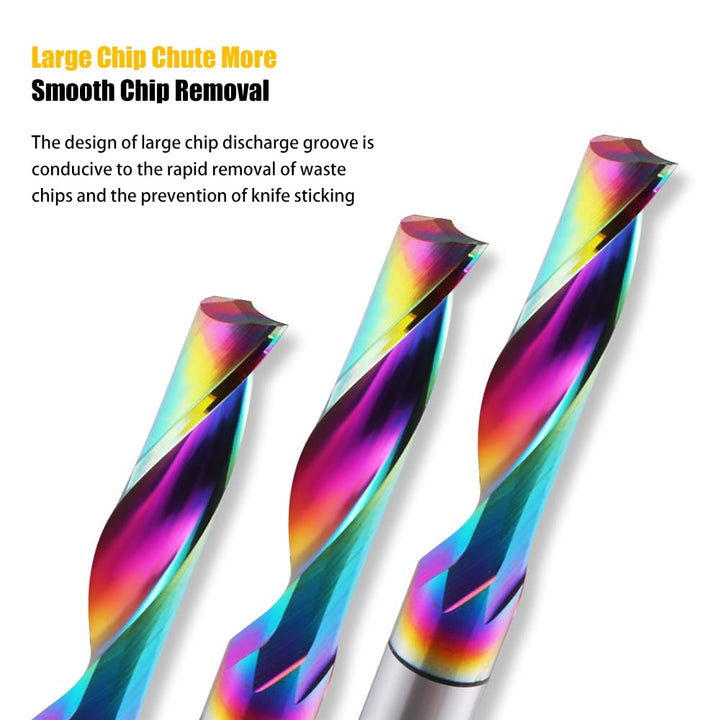 - Hohe Verarbeitungseffizienz--Spiral Router Bits mit grosser Spanabtragsnut reduziert effektiv Schneidwiderstand, bequem für Spanabtragung, Ende mit sauberer Kante auf Ober- und Unterseite, Antihaft mit den Spiralendfräsern, macht das Werkstück glatter