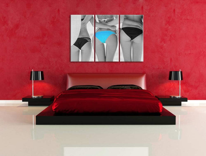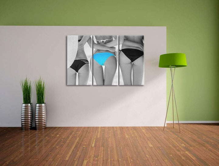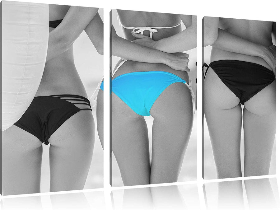 Frauenhintern in Bikinihose schwarz/weiss 3-Teiler Leinwandbild 120x80 Bild auf Leinwand, XXL riesig