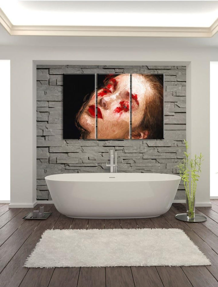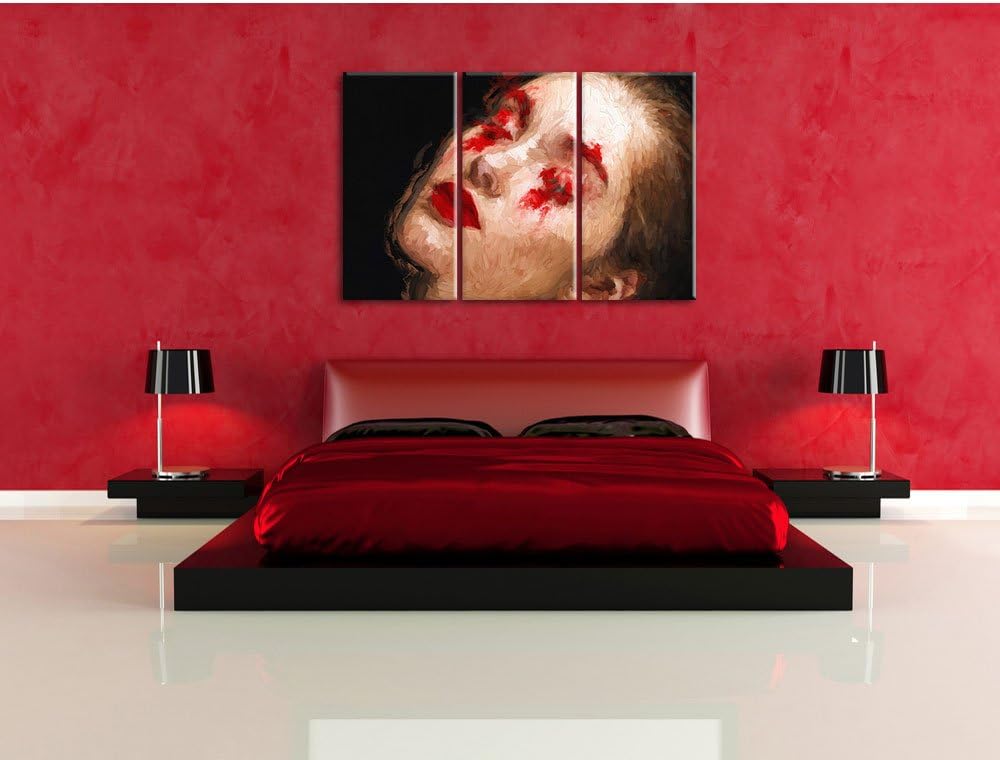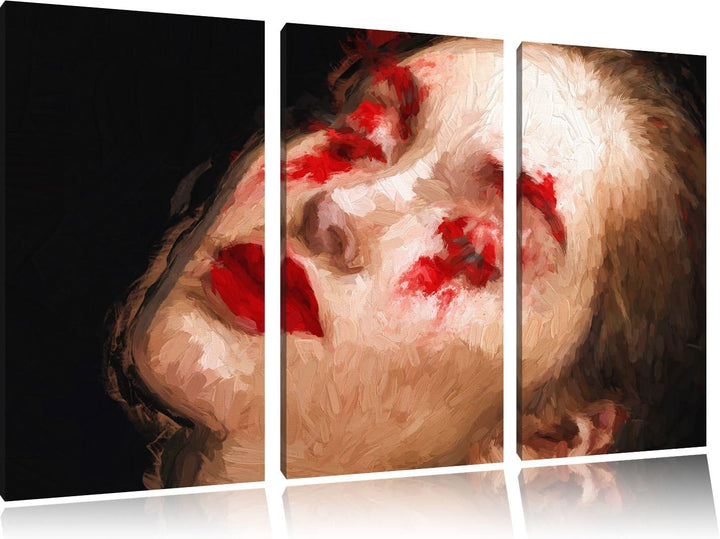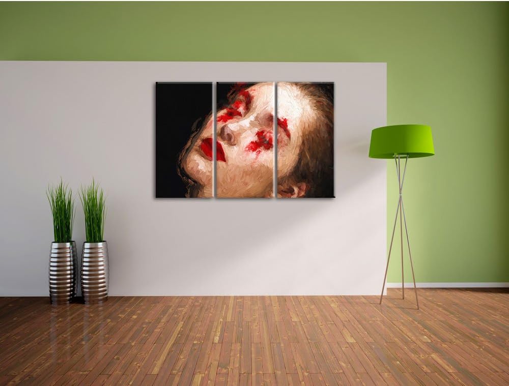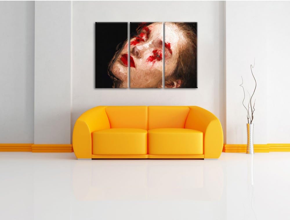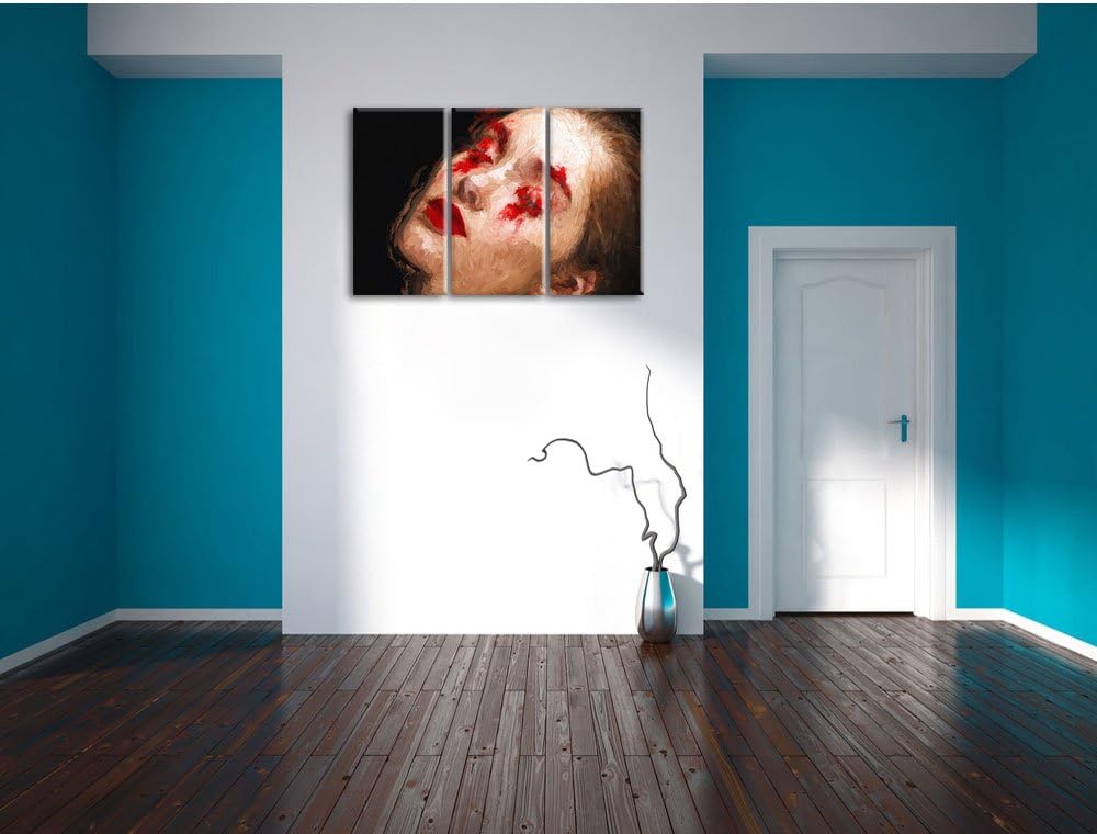 Frau mit roten Puder Pinsel Effekt 3-Teiler Leinwandbild 120x80 Bild auf Leinwand, riesige Bilder fe