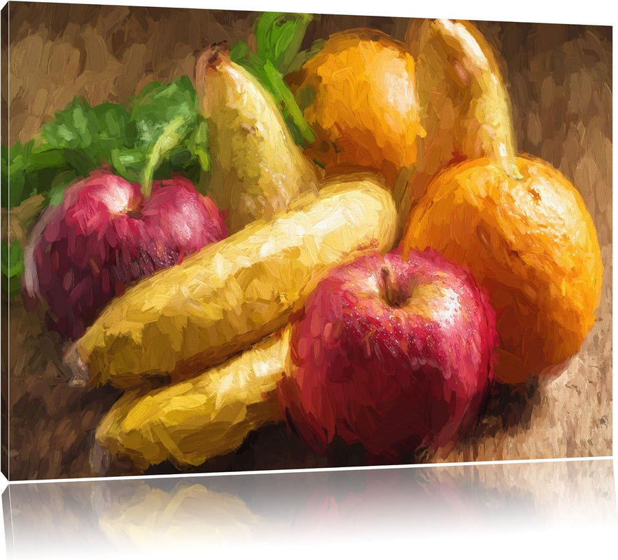 Früchte Pinsel Effekt, Format: 100x70 auf Leinwand, XXL riesige Bilder fertig gerahmt mit Keilrahmen