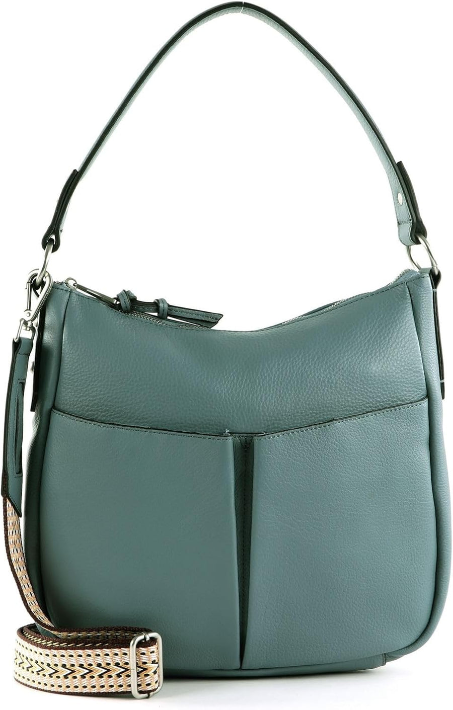 PRODUKTBESCHREIBUNGEN FREDsBRUDER Schultertasche - im eleganten Design Daten Schultertasche: o Masse: Breite ca. 33 cm, Höhe ca. 30 cm, Tiefe ca. 8 cm o Gewicht: ca. 805 g o Farbe: Daylight Blue (blaugrau / bunt) o 1 Henkel, verstärkt: ca. 55 cm o 1 Schulterriemen abnehmbar, stufenlos verstellbar: ca. 95 cm - 150 cm o Material: Aussen 100% Rindsleder, Beschichtung 100% Polyester, innen 100% Polyester o Lieferumfang: FREDsBRUDER Schultertasche mit Etikett, 1 x Staubbeutel, 1 x Schulterriemen Ausstattung Schultertasche: o Schultertasche wird mit Zipper geschlossen o Im Hauptfach 3 Einschubfächer und 1 Zipperfach o Auf der Vorderseite 2 Einschubfächer mit verdecktem Magnetverschluss o Auf der Rückseite 1 aufgesetztes Einschubfach o Mit verstärktem Boden ausgestattet o Besitzt geräumiges Hauptfach o Das FREDsBRUDER Logo ist gut sichtbar eingearbeitet FREDsBRUDER Bloomfield Hobo - Eine praktische Schultertasche für die modische Frau Diese FREDsBRUDER Tasche vereint Design und Grösse zu einer stimmigen Einheit. Im Inneren der Schultertasche können all Ihre wichtigsten Habseligkeiten sicher und geordnet verstaut werden und auch aussen an der Tasche bekommen Sie zum Beispiel Ihr Smartphone oder die Geldbörse unter, sodass dies jederzeit schnell erreichbar ist. Mit der Bloomfield Hobo laufen Sie beschwingt durch die Strassen und geben jederzeit ein tolles Bild ab. Dank des verstellbaren Schulterriemen bietet Ihnen diese Tasche optimalen Tragekomfort und setzt zudem noch Farbakzente, sodass dieser Alltagsheld jederzeit bestens zur Geltung kommt!