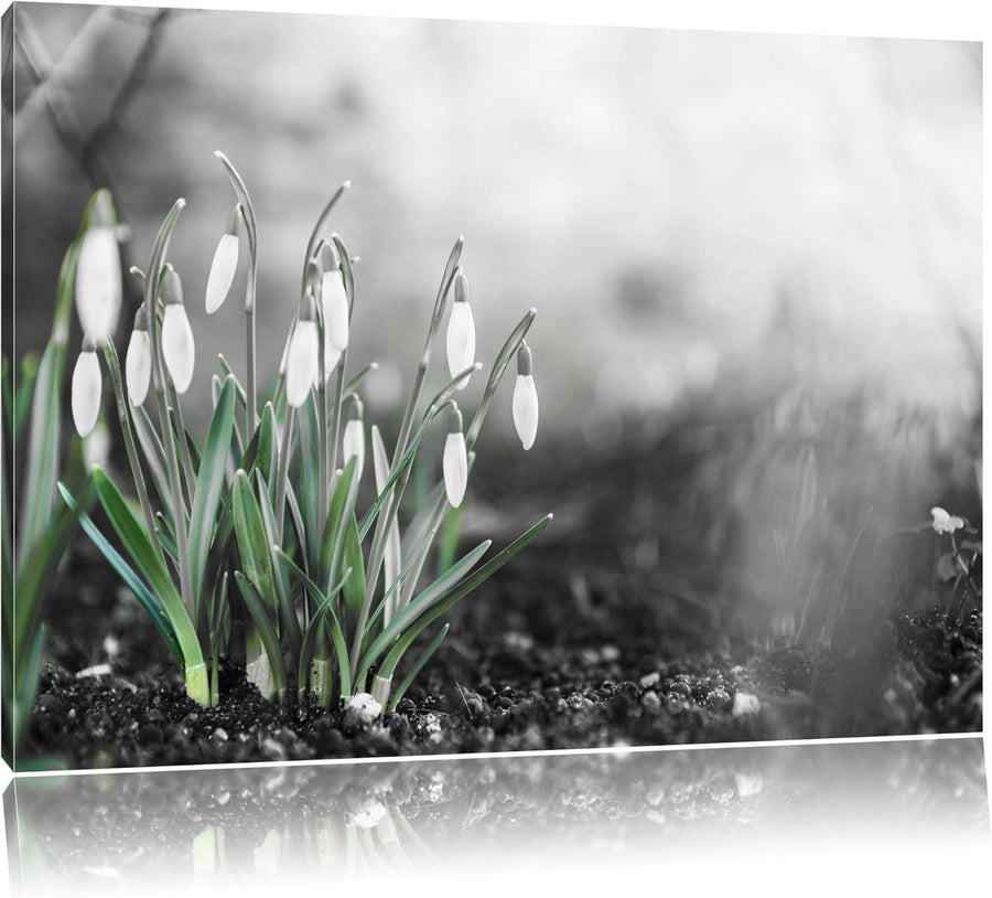 Frühlings Schneeglöckchen schwarz/weiss Format: 100x70 auf Leinwand, XXL riesige Bilder fertig gerah