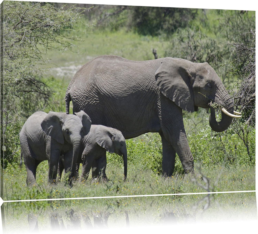 friedliche Elefantenfamilie Leinwand, XXL riesige Bilder fertig gerahmt mit Keilrahmen, Kunstdruck a