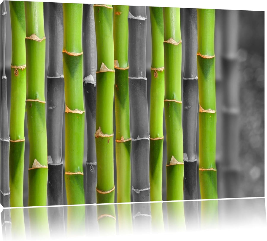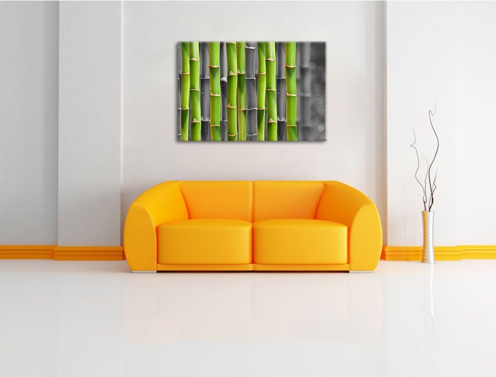 frischer grüner Bambus schwarz/weiss Format: 100x70 auf Leinwand, XXL riesige Bilder fertig gerahmt