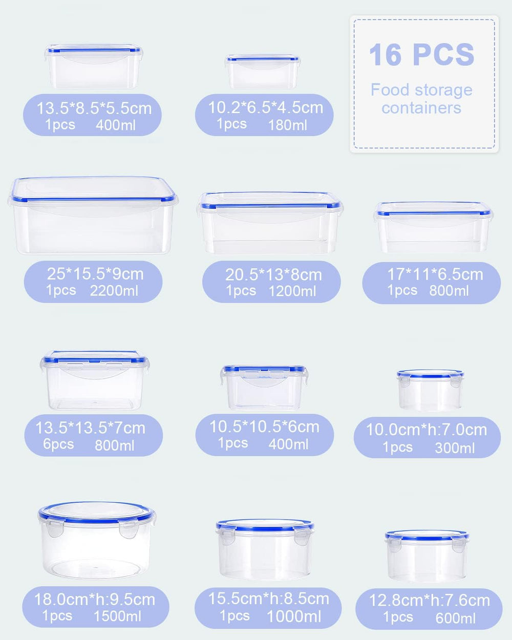 - Ideal zur Aufbewahrung:Das 32 teilige Aufbewahrungsdosen Set besteht aus 16 Dosen und 16 Deckeln. Die Dosen sind Mikrowellen tauglich, spülmaschinenfest und zum Einfrieren geeignet. So können Sie Ihre Lebensmittel individuell und ohne umständliches Umfüllen luftdicht und auslaufsicher lagern.Bei Nichtgebrauch ist das Dosenset einfach und kompakt zu verstauen.