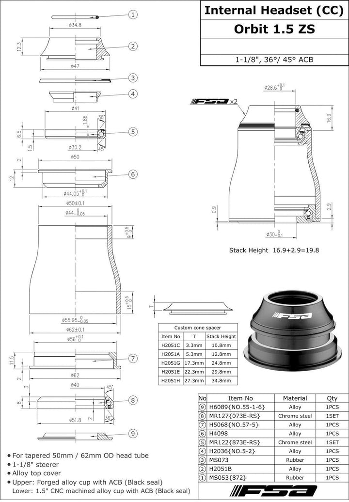 - - Für konische 50 mm/62 mm OD Steuerrohr