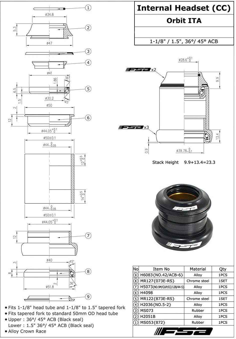 - - Passend für 1-1/8 Zoll Steuerrohr und 1-1/8 Zoll bis 1,5 Zoll konische Gabel.